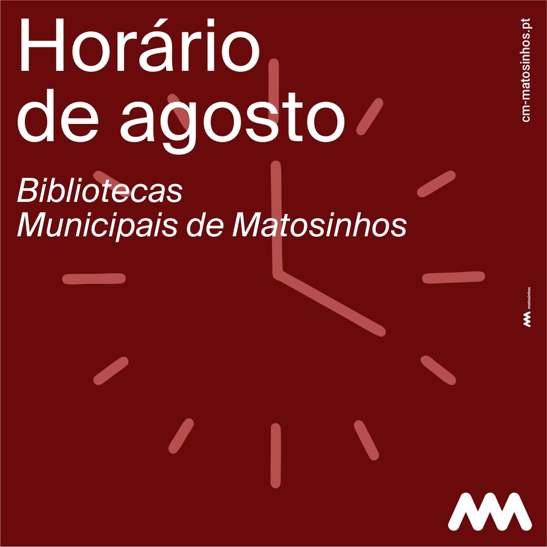 Informamos que, durante o mês de agosto, as Bibliotecas Municipais de Matosinhos estarão encerradas aos sábados. Salientamos que o horário de funcionamento durante os dias úteis não sofrerá alterações, mantendo-se das 9:00h às 19:00h.